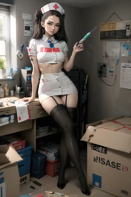 Another new job for your waifu! This time, she has decided to be a nurse to help all the poor souls who are having some sort of health problem in their life. And, if she so happens to "help" in other ways as well for those individuals, would anyone actually be disappointed?