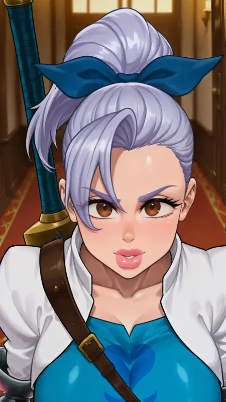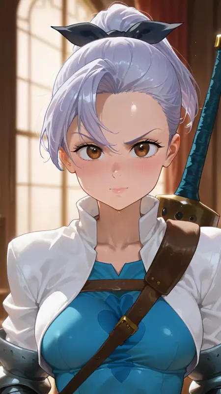 Jerichodef,薰衣草色头发,短马尾,棕色眼睛,发带,侧分刘海