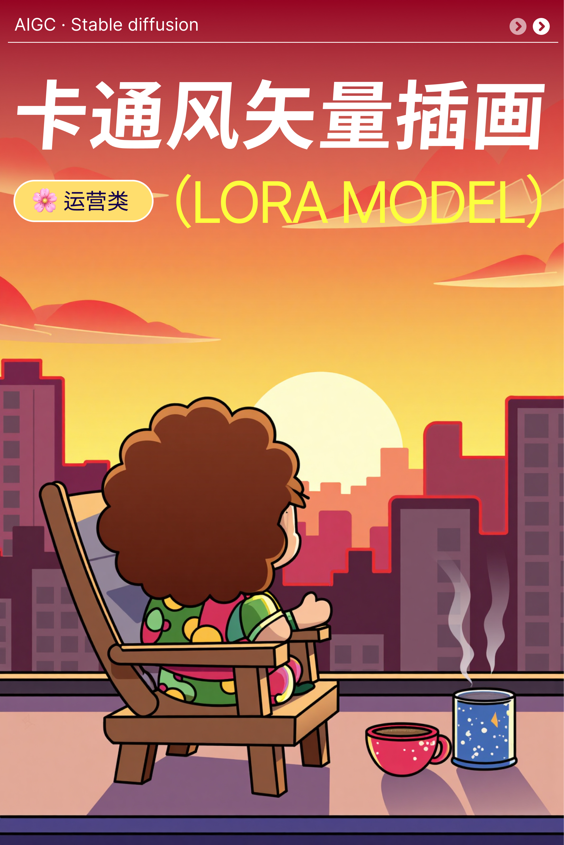 添加“卡通矢量线”触发词,简单的描述即可生成该风格的图像!