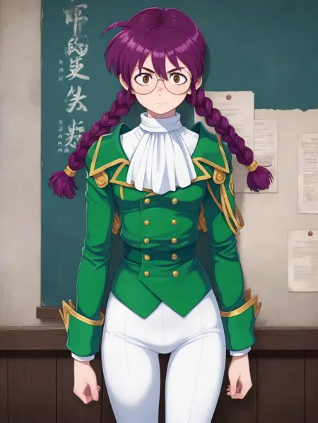 通用:雀斑,眼镜,圆形眼镜,紫色头发,双辫子,棕色眼睛,