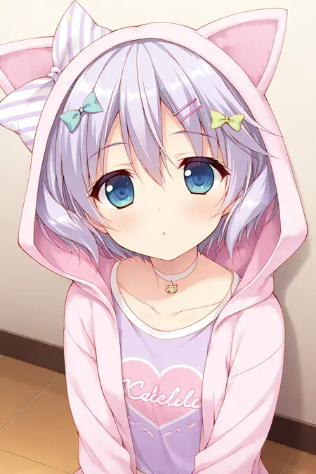 white striped,pink hoodie,hood up,cat hood,cat ears,