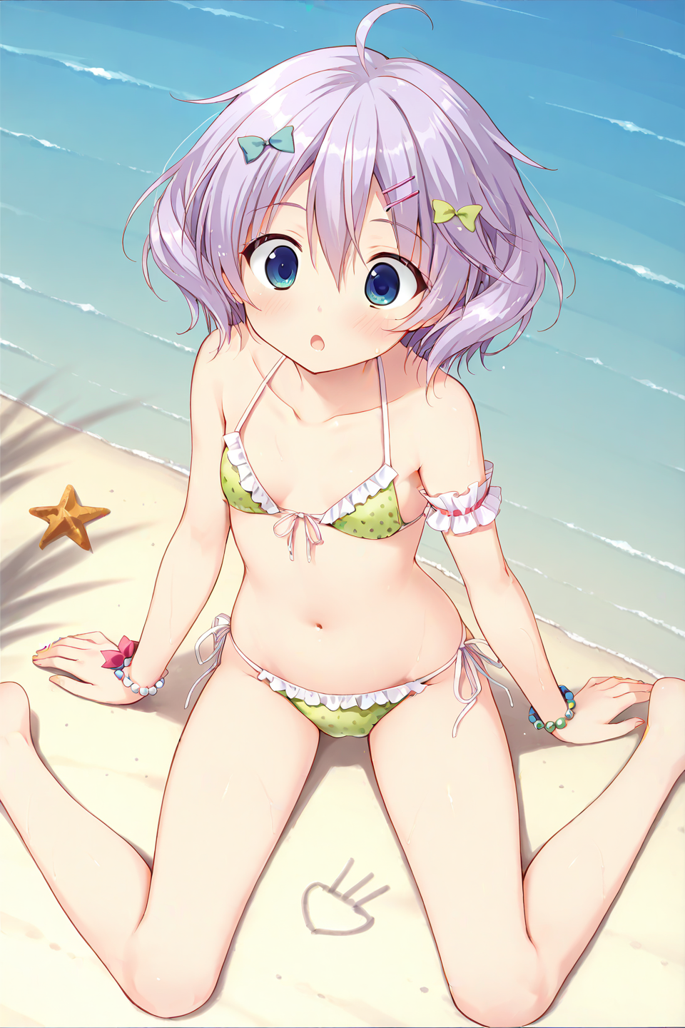 green bikini,polka dot bikini,string bikini,frilled bikini,halterneck,front-tie bikini top,side-tie bikini bottom,arm garter,pearl bracelet,