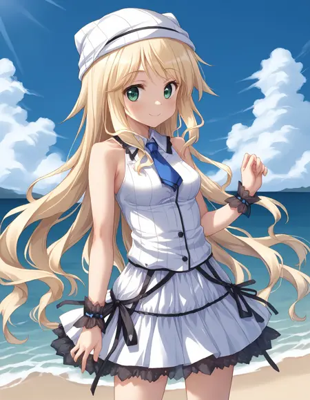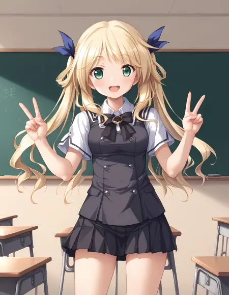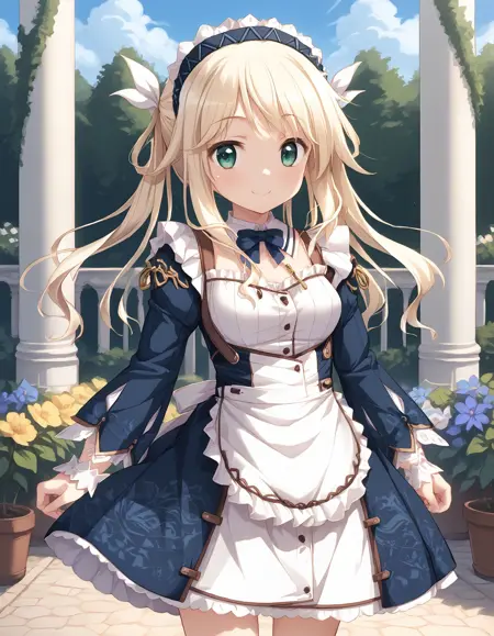 | 训练词汇 | D-D, blond hair, long hair, green eyes, medium breasts, {twintails, hair ribbon| hair down, very long hair,}已复制! outfit01, Chrono Clock uniform, shirt, white shirt, collared shirt, short sleeves, slit sleeves, bowtie, black bowtie, vest, black vest, close vest, skirt, black skirt, pleated skirt, dark blue hair ribbon,已复制! outfit02, maid, dress, maid dress, headdress, maid headdress, long sleeves, detached collar, bow, wrist cuffs, white cuffs, apron, frilled apron, boots, brown boots, flower patterned, daffodil\(flower\), hair white ribbon,已复制! outfit03, shirt, white shirt, no sleeves shirt, sleeveless, bare shoulder, collared shirt, lace trimming collared shirt, necktie, cuffs, wrist cuffs, see-through lace cuffs, skirt, white skirt, ribbon embellishments, skirt with ribbon embellishments, lace trimmed skirt, hat, white hat, knitted hat, hat with bells,已复制! |