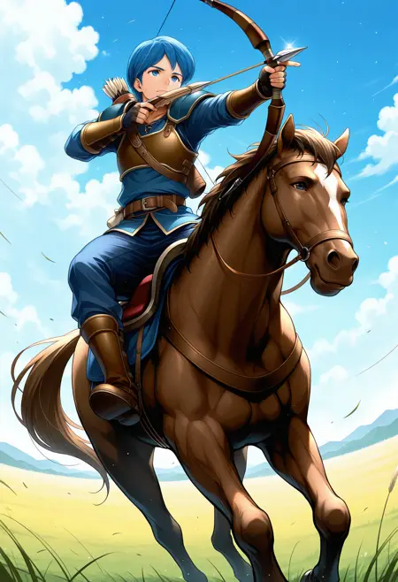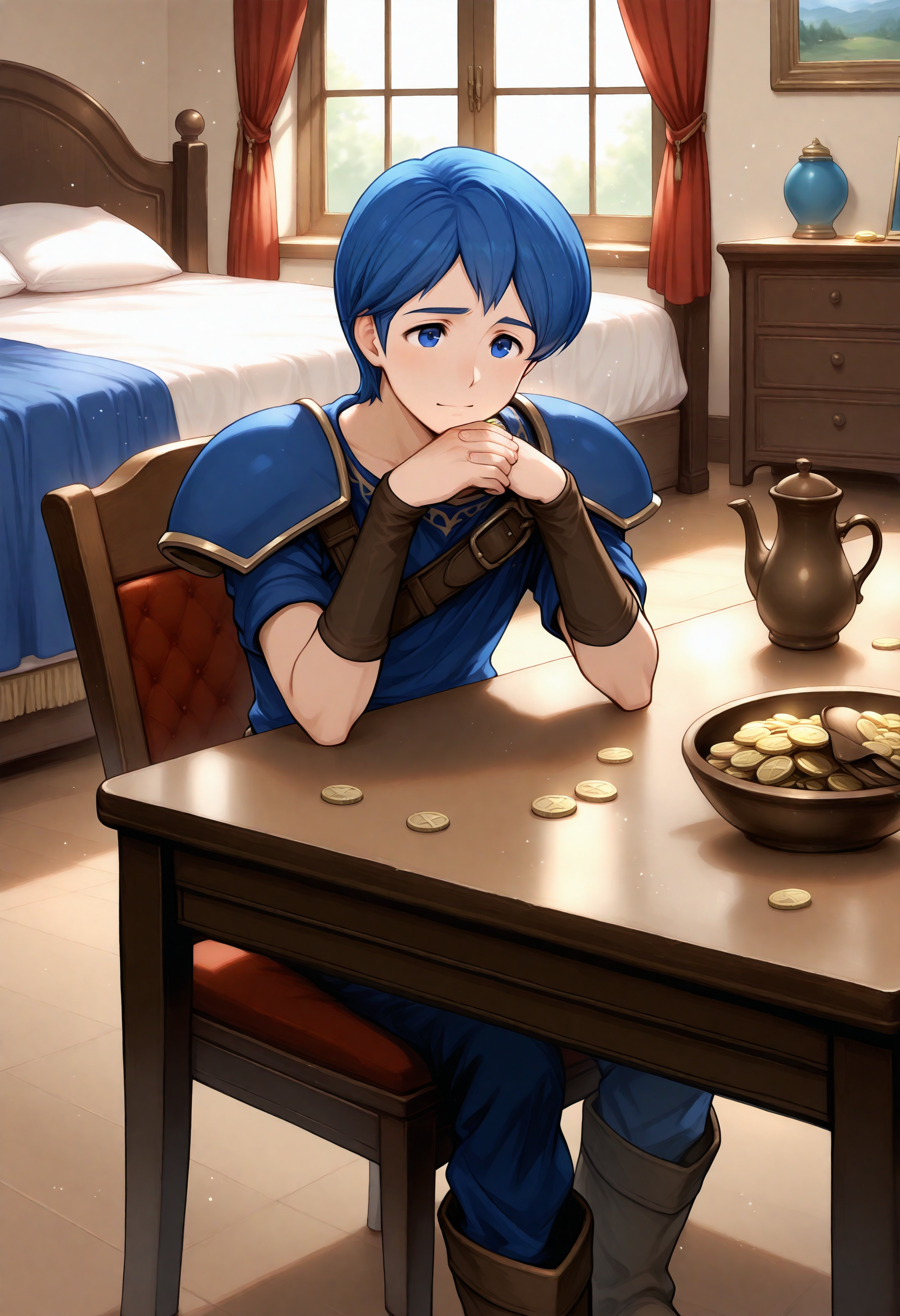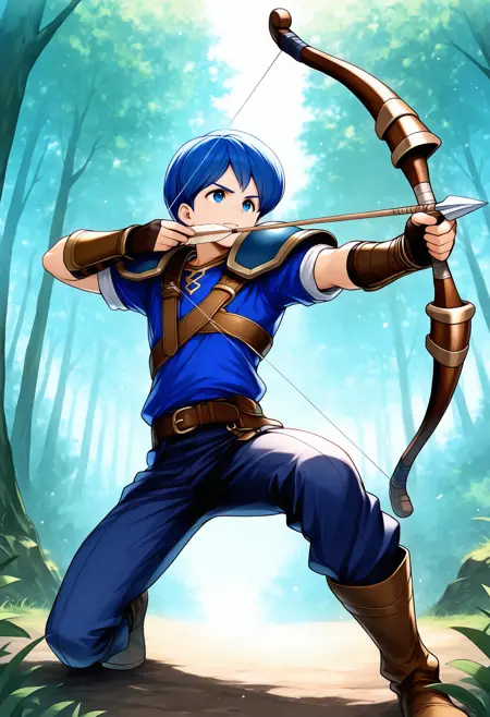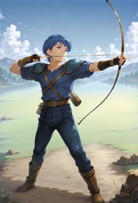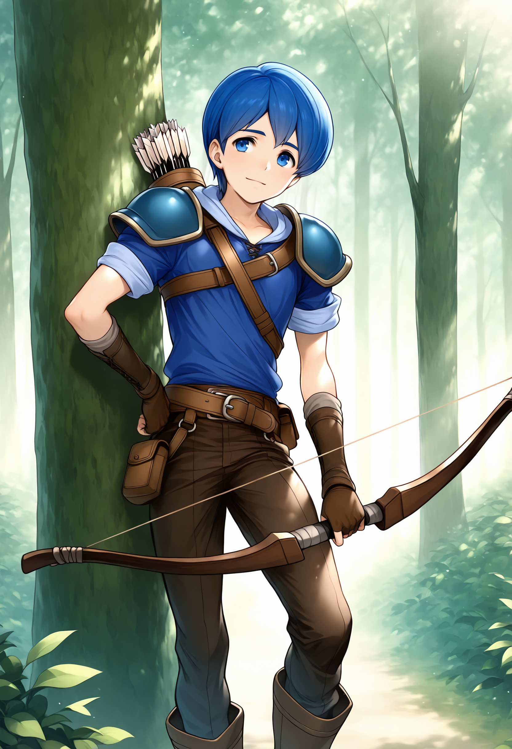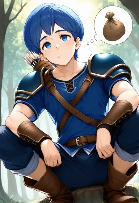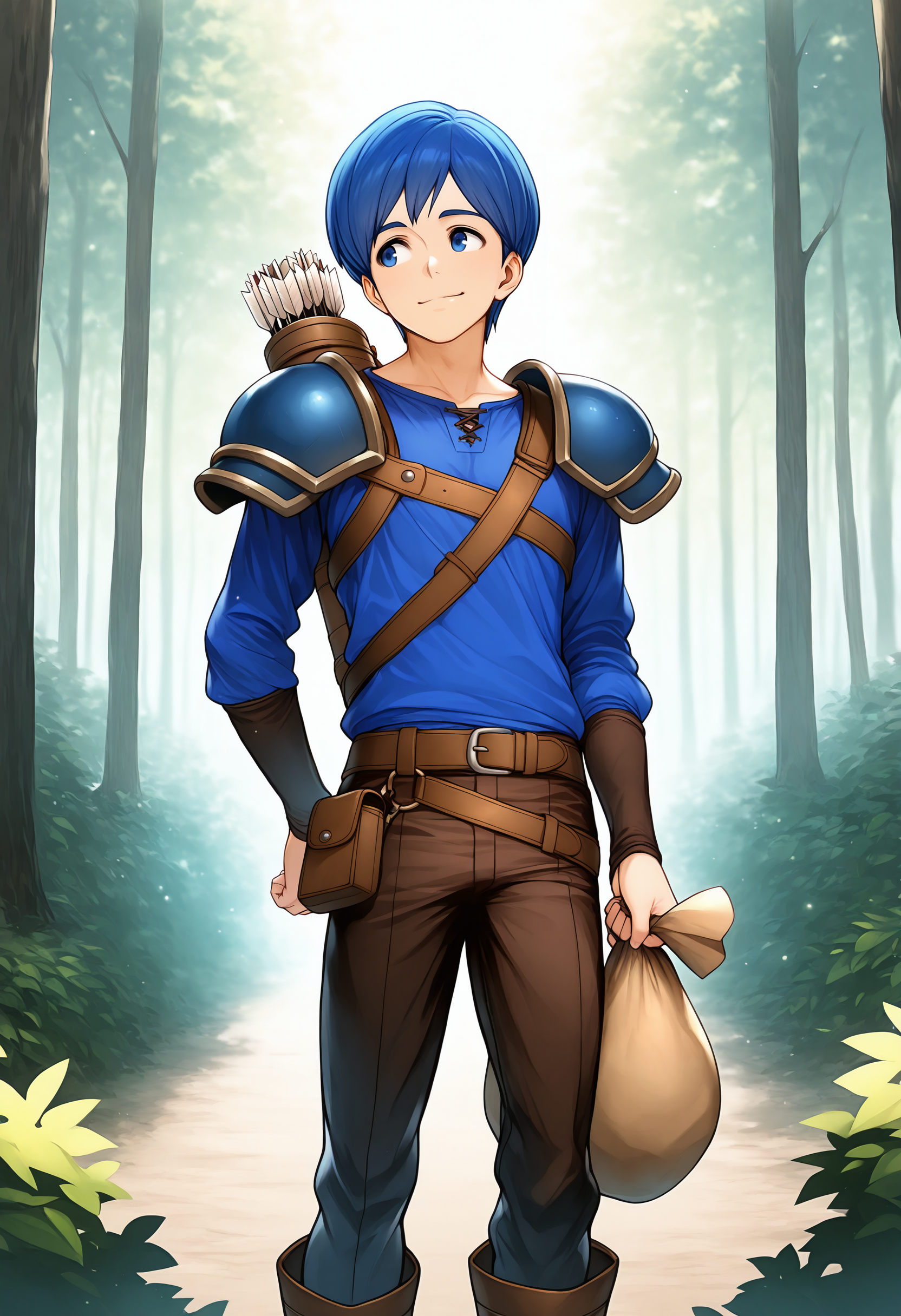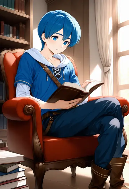 トリガーワード:1boy,castor_(fe),blue hair,blue eyes,armor,boots