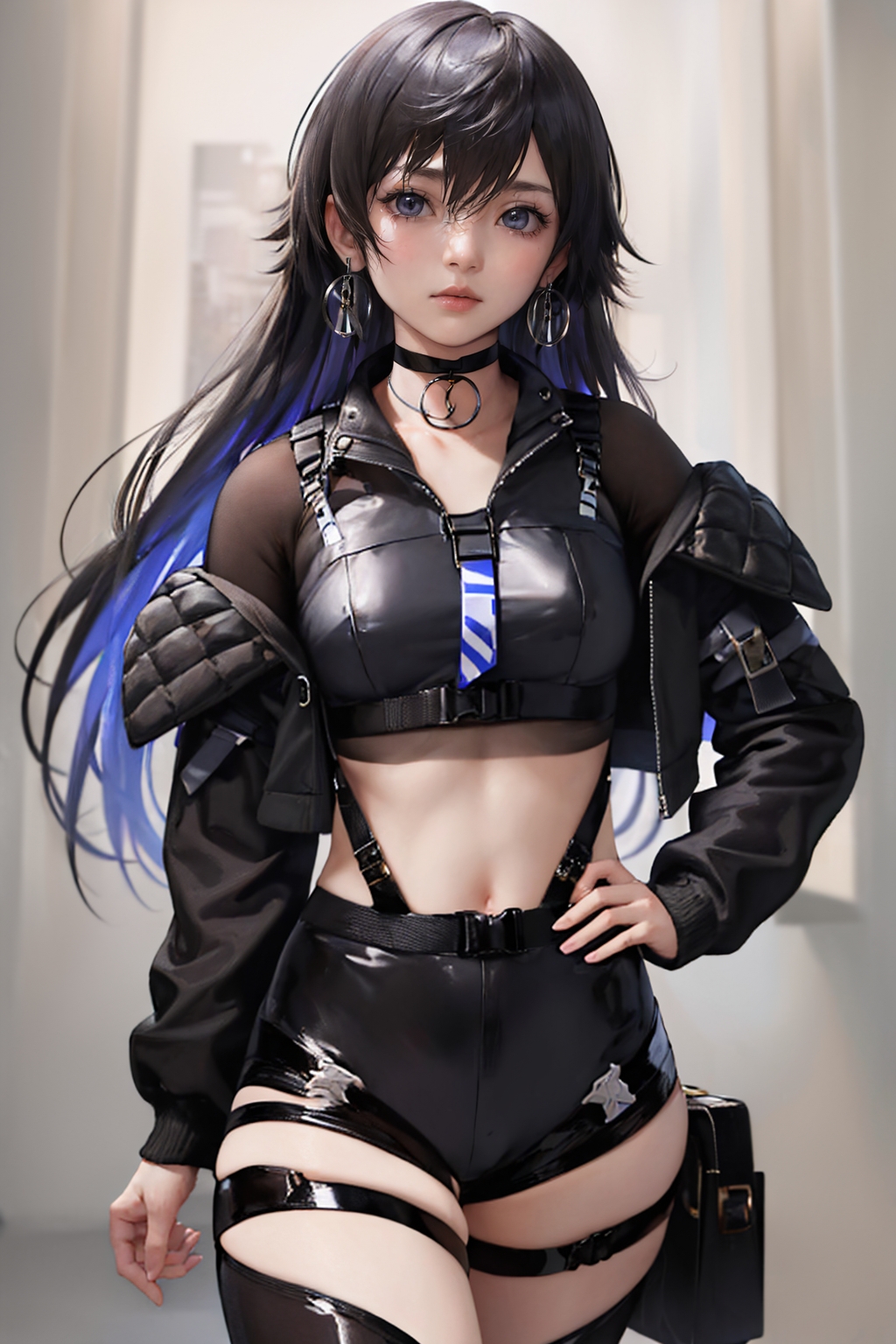 기본 복장: 검정 재킷, 초커, 귀걸이