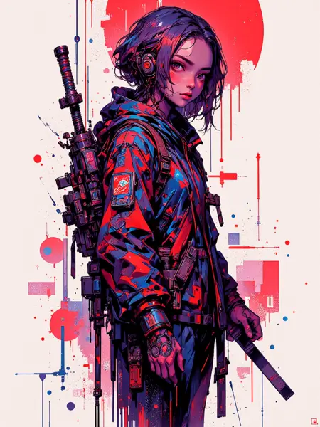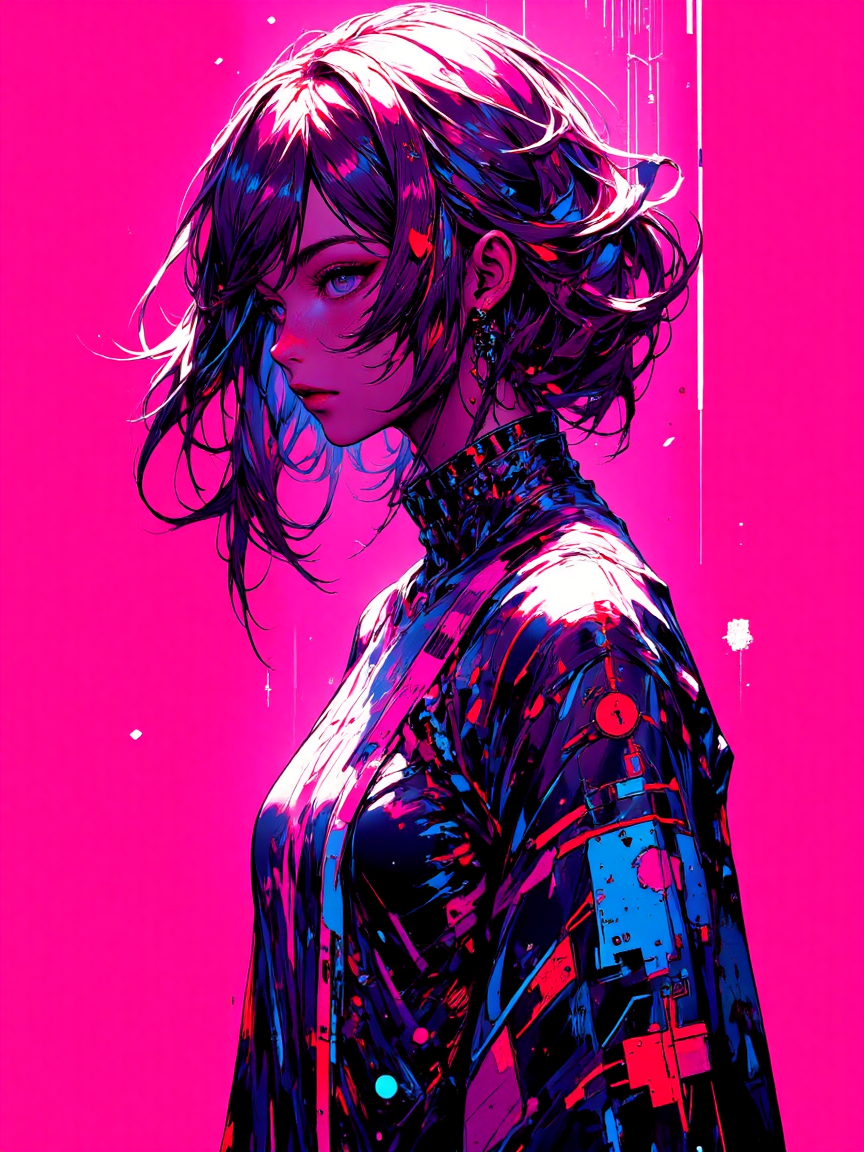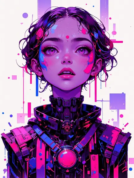 prompt - masterpiece,best quality,amazing quality,very aesthetic,absurdres,<lora:CreateConcept_Illustrious:1>, createconcept, solo, simple background, character focus, 1girl, digital painting \(artwork\), glitch art, artwork