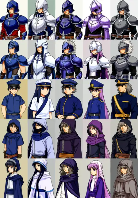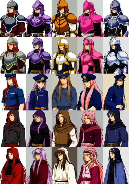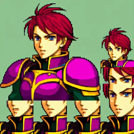 这是一个经过精心训练和标注的模型,能够精准复现《火焰之纹章:暗黑龙与光之剑》和《光之轨迹》角色艺术的视觉风格。它在生成可插入 Gameboy 的精灵图集方面也表现出色,但为此你需要参考上方所示的示意图进行操作。