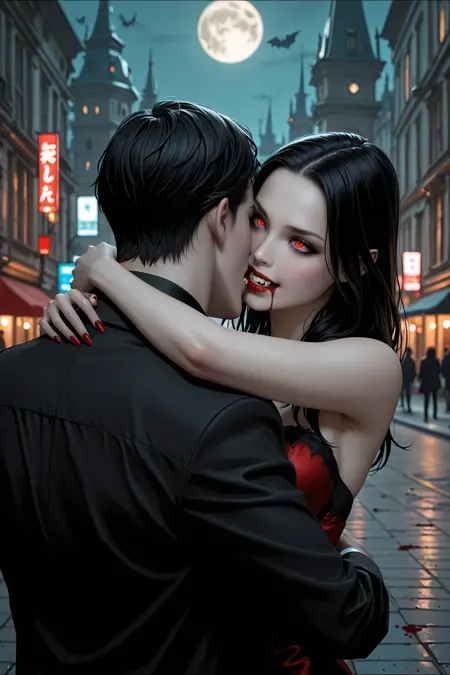 创造女性吸血鬼。无需真实触发词。我非常喜欢吸血鬼,一直想象女性吸血鬼是优雅、苍白、身着长裙的女性,因此我使用了大量带有裙子的图像。所以,包含裙子、翅膀、蝙蝠、发光红眼的提示应该能产生不错的效果。我想这没什么Illu做不到的,但确实有帮助 ;)。