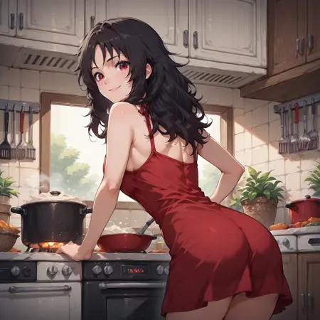 【カスタム衣装プロンプト】: Casual_Outfit, 赤いドレス