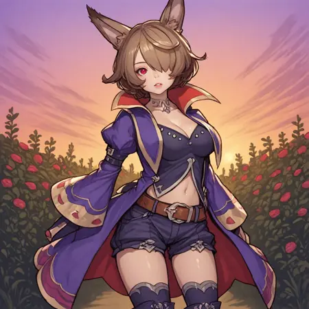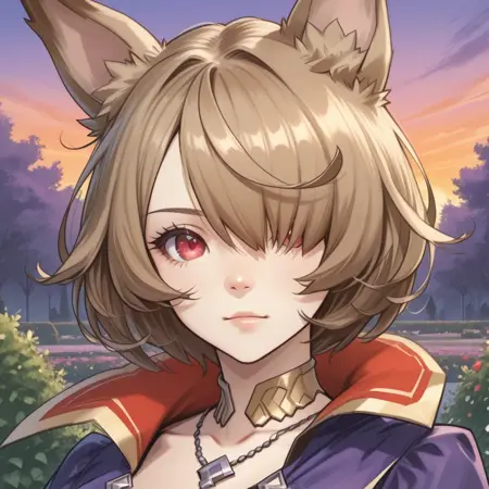 트리거 단어: 알테미아, 갈색 머리, 단발, 동물 귀, 붉은 눈, 한쪽 눈을 가리는 머리카락