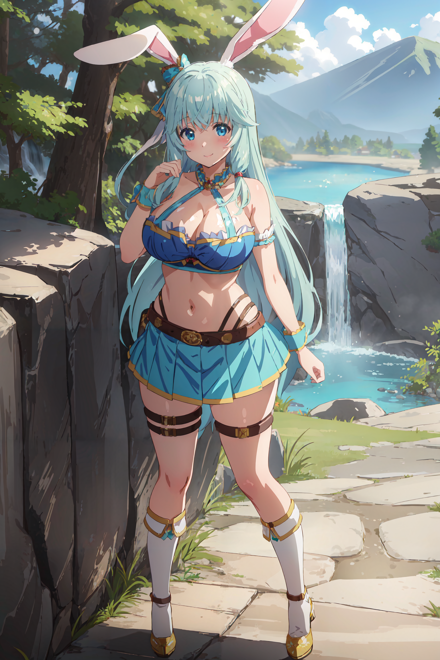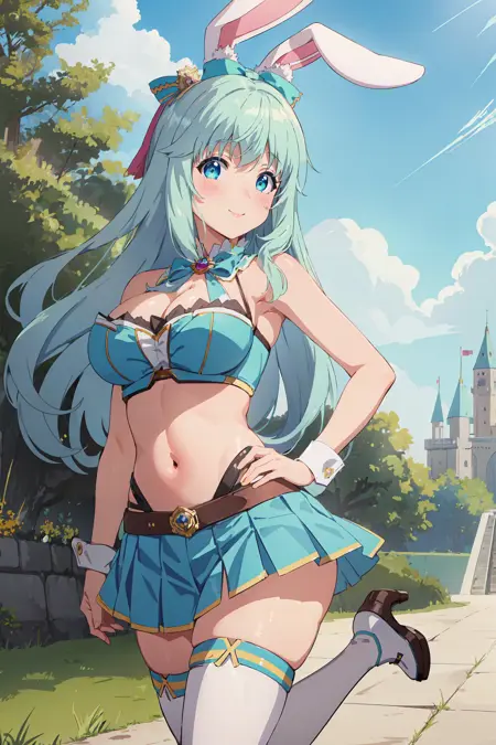 • 服装:露胸、露脐、百褶裙、大腿绑带、过膝靴、腕部护具