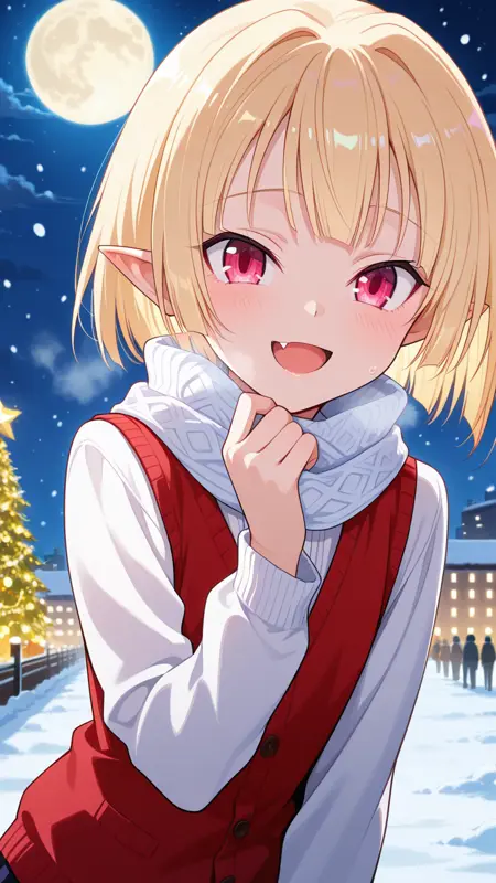 gasper vladi, otoko no ko, blonde hair, pointy ears, red eyes, pink eyes, short hair, blunt bangs, fang,