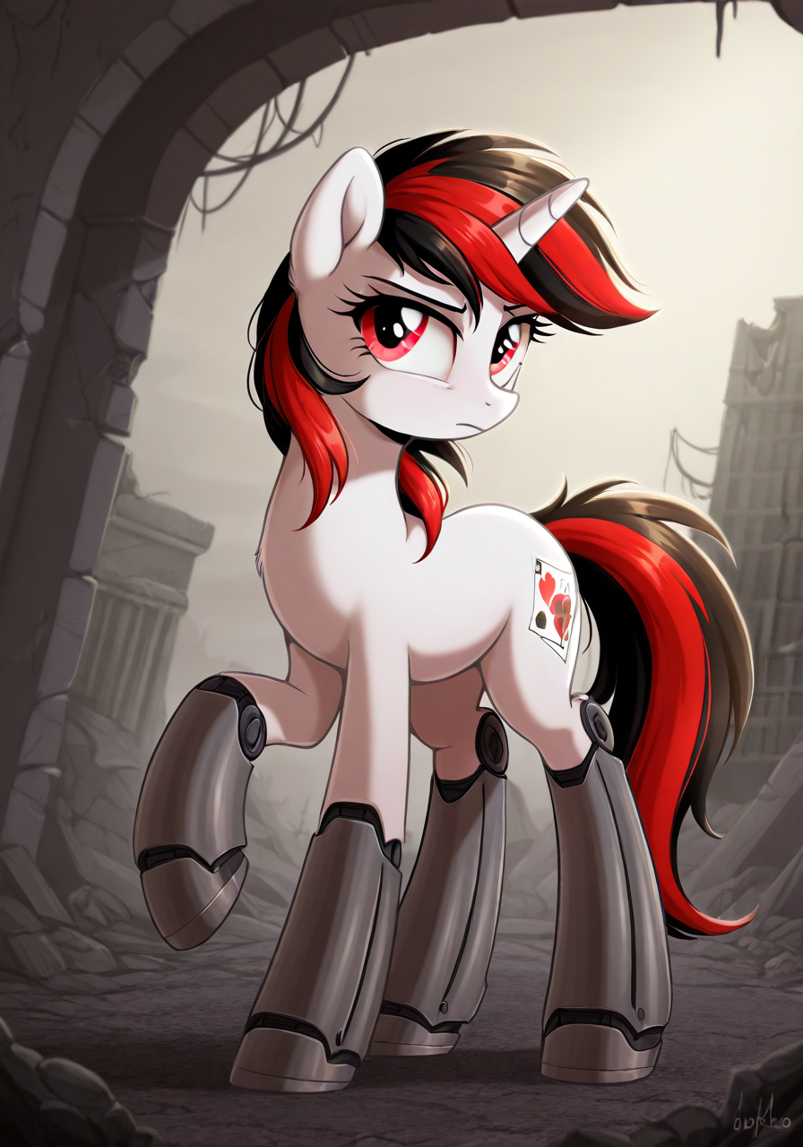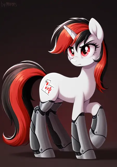 bj-mlpoc, pony, unicorn, black and red hair, two tone hair, red eyes, white body
