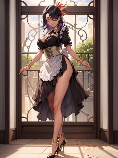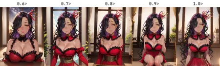 If want to try another outfit i recommend to low the weigth around 0.5-0.6, and putting negative prompt the dress and red dress, etc.