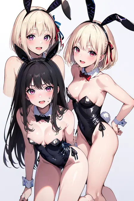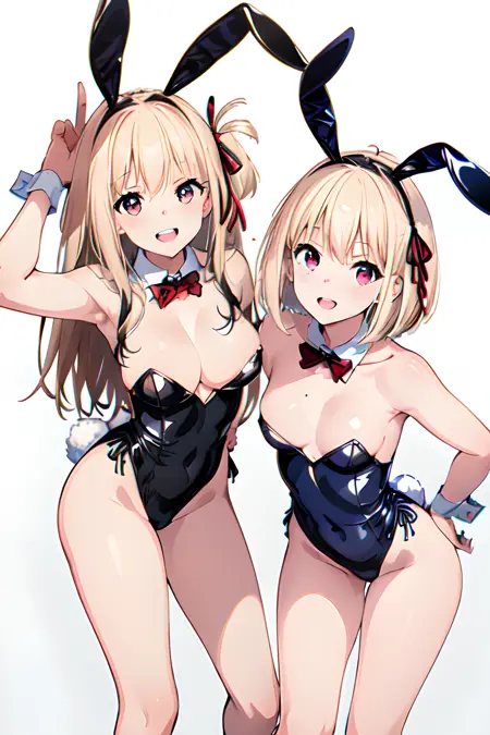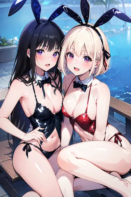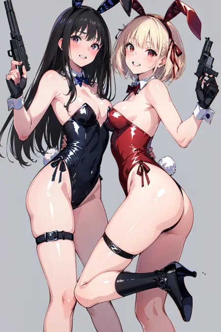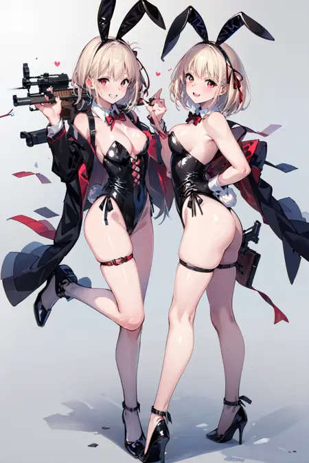 nishikigi chisato, multiple girls, inoue takina, lycoris uniform (can be swapped for whatever you want, less than a bunny, or none at all),