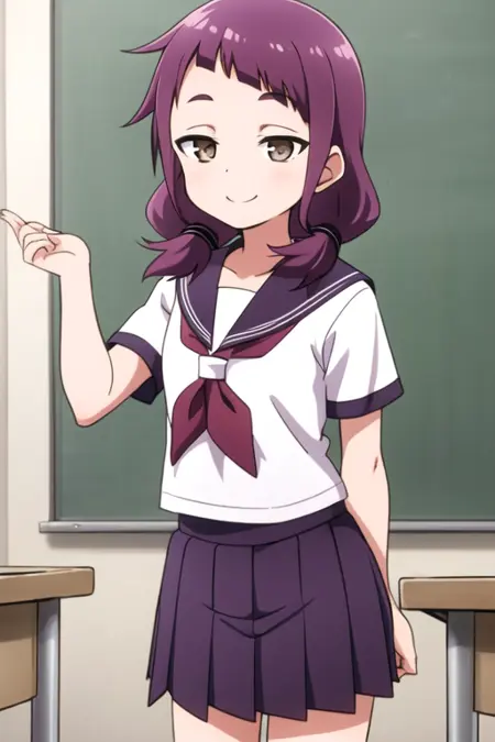 kunoichi_shakuyaku, brown eyes, purple hair, low twintails, purple kimono