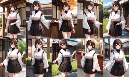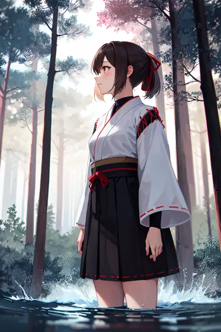 Ise outfit2hyuugaise, short hair, ponytail, hair ribbon, japanese clothes, long sleeves, hakama skirt, black skirt