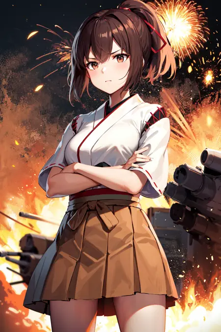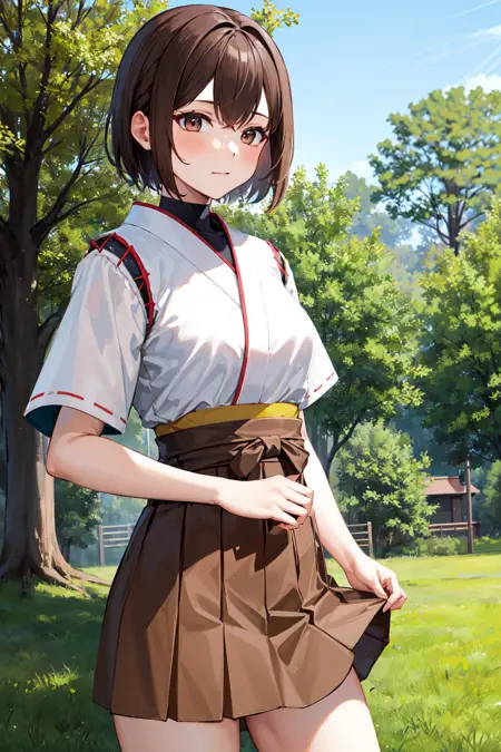 hyuuga outfit1hyuugaise, short hair, japanese clothes, short sleeves, hakama skirt, brown skirt