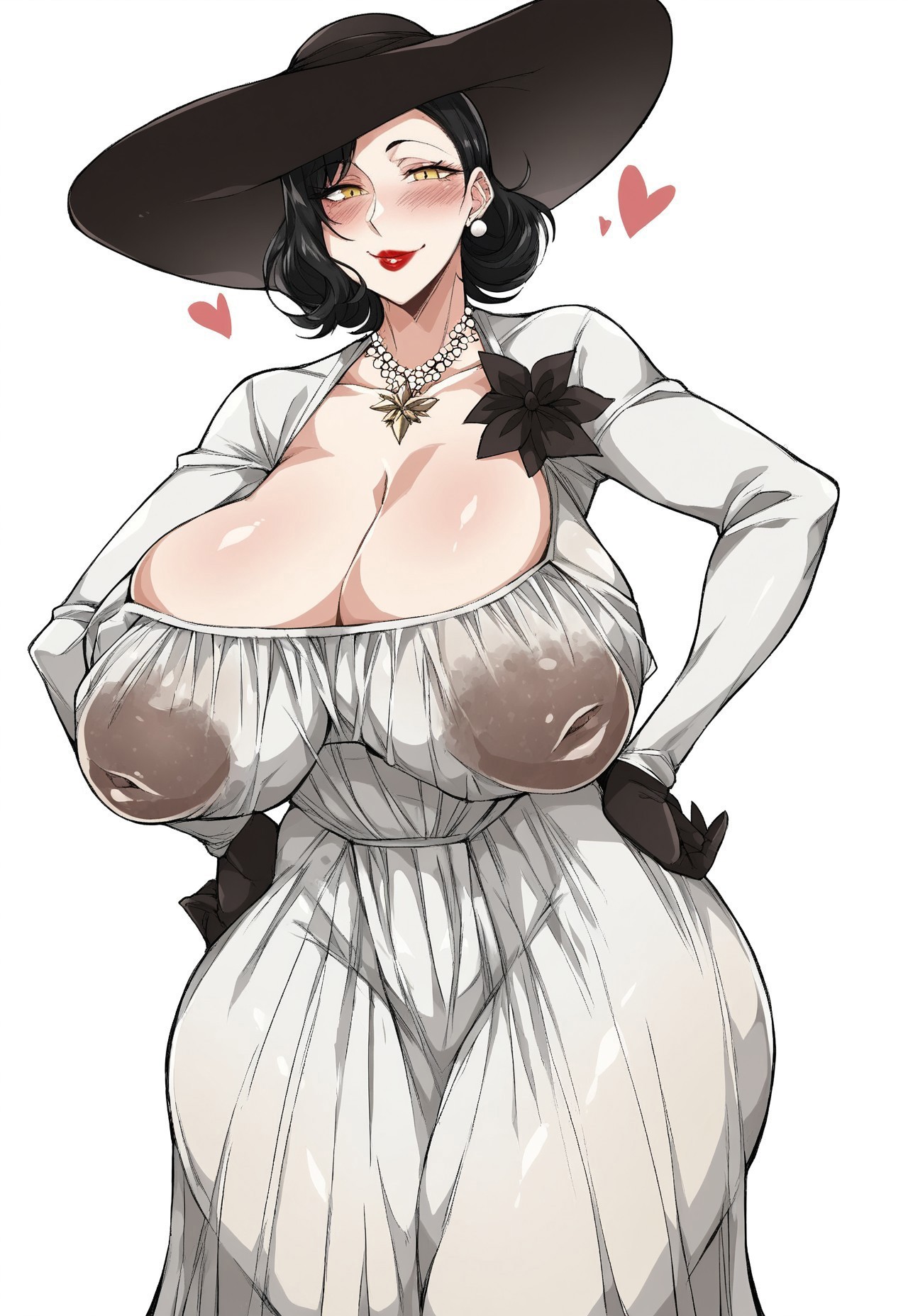 tenzen_miyabi_style, 1girl, voluptous body, inverted nipples, puffy nipples, large areolae