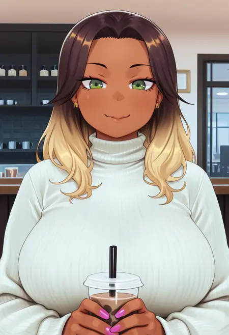 Defaults to huge breasts by default, so use another tag if you want anything else.