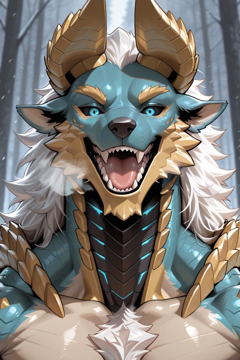 🔹 默认奇鲁巴恩提示词奇鲁巴恩,蓝色眼睛,角,闪电效果,毛发,发光背部,尾巴,爪子,肌肉发达