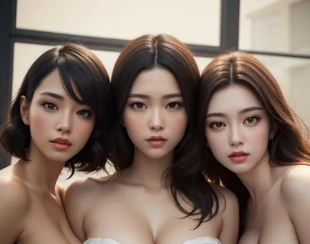 이 포즈는 세 명의 인물을 포함한 촬영에 적합하며, 감정/캐릭터를 강조하고 주로 상반신(허리 위)을 중심으로 구성됩니다.