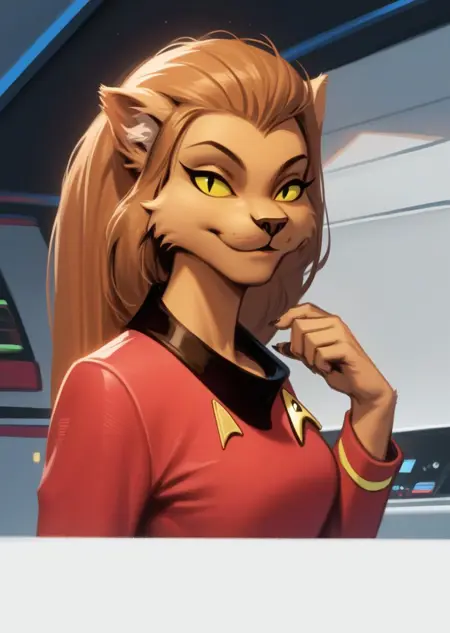 저는 "트레키"가 아니며, 단지 로어 데크스와 현대 영화를 조금 봤을 뿐입니다. 유니폼이 정확하지 않다면 LoRA를 사용하여 더 잘 보이게 만들 수 있습니다.