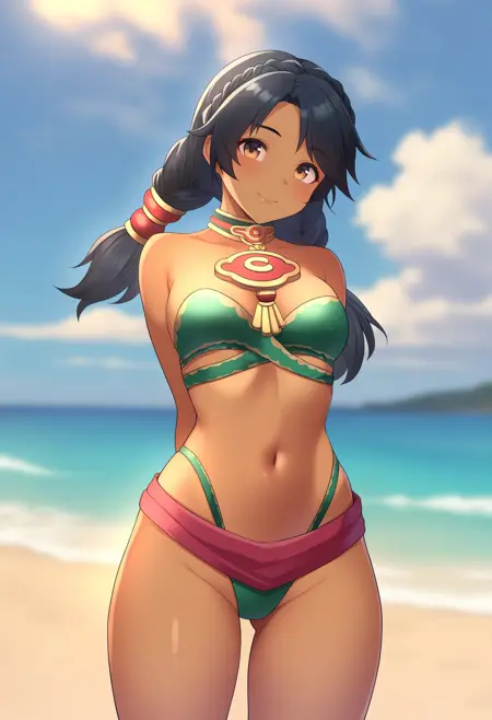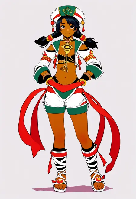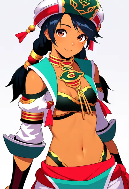 기본 프롬프트: 1girl, talim, black hair, twintails, braid, dark skin, navel, midriff