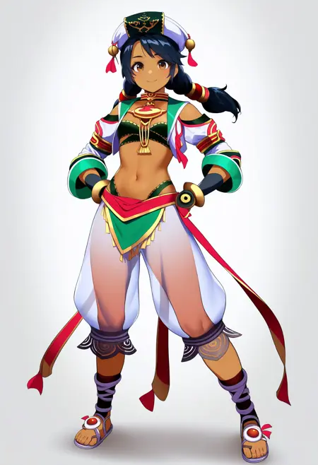 옷 프롬프트: hat, arabian clothes, gloves, sandals