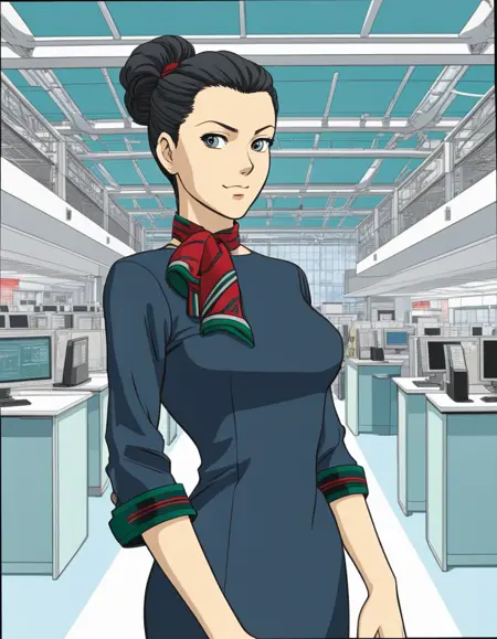 If you want a stewardess, suit, jacket, white shirt skirt, blue silk scarf