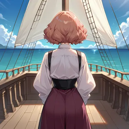 附加:船甲板、户外、云、海洋、桅杆、绳索装置、帆、栏杆