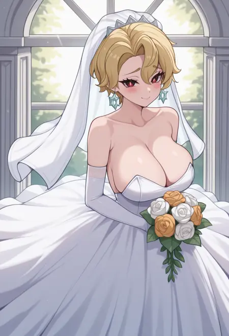 トリガー+外見: br1ar, 短い髪、金髪、赤い目、白い瞳孔、まつ毛
