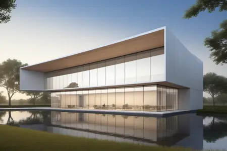 shifanqu, demonstration area, no humans,outdoors,building,,scenery, tree, sky, reflection, grass, window,