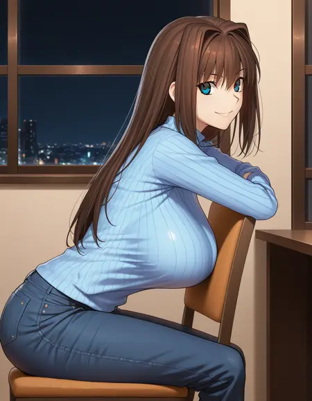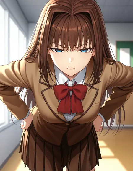 aozaki aoko, brown hair, long hair, hair intakes, blue eyes