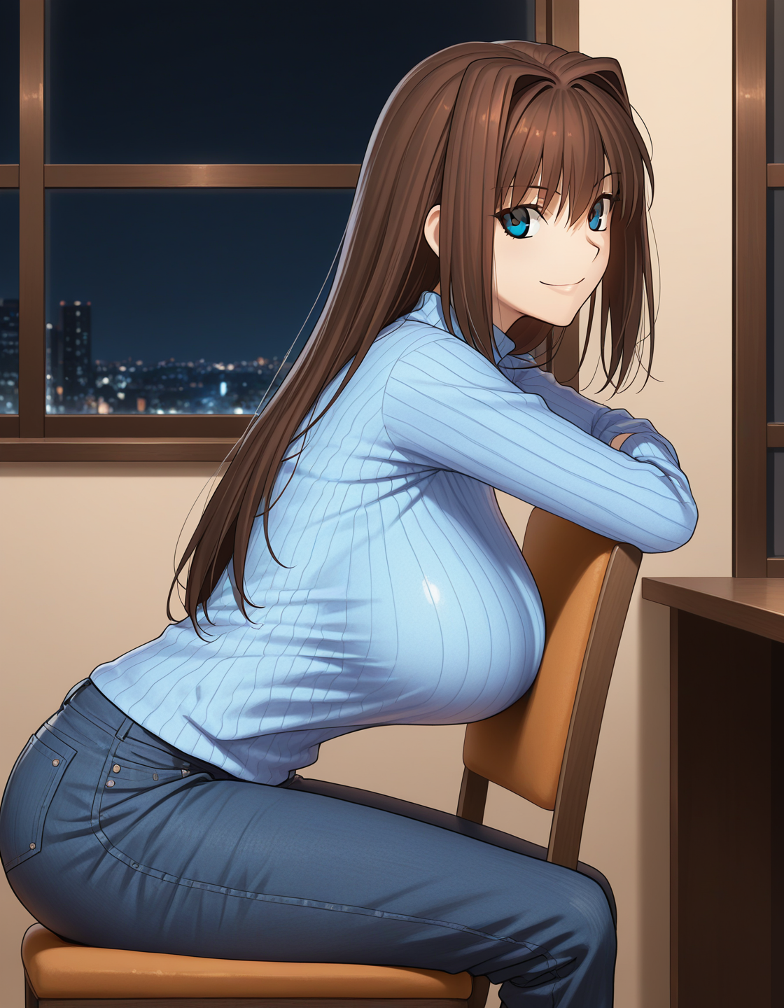 ribbed sweater, blue sweater, denim pants