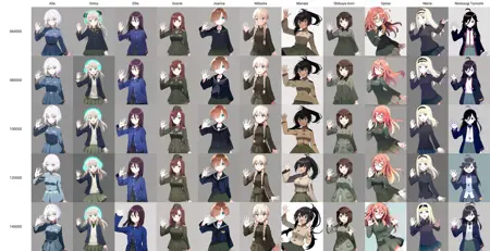 모든 중간 체크포인트는 다음 링크에서 사용할 수 있습니다: https://huggingface.co/alea31415/world-witches-series