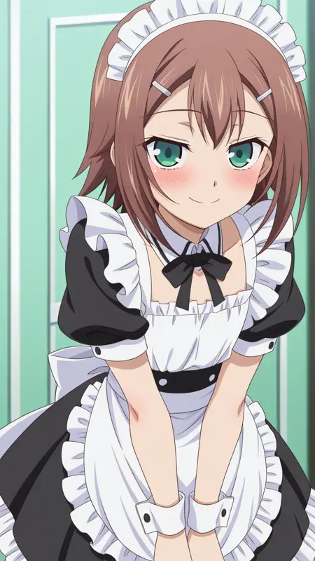 maid, maid apron, frills, frilled dress, pink dress, maid headdress,