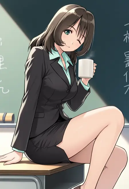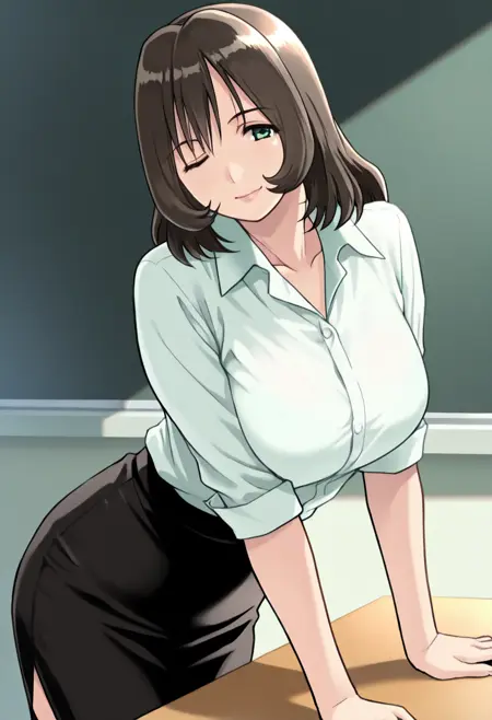 권장 설정: 원래 디자인을 유지하려면 양성 키워드에 애니메이션 채색 및 성숙한 여성 사용하세요. 셔츠와 스커트만 입은 모습을 원한다면 음성 키워드에 자켓/수트를 추가해야 할 수 있습니다.