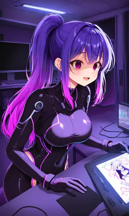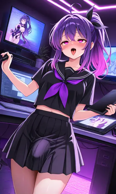 私が作成した最初のキャラクターモデルです。SFWおよびNSFW両方に対応するLoRAを意図していました。ルナは音楽を専門とするフタナリのVTuberです。ストリーミングやオーディオソフトウェアの作業をしていないとき、彼女は契約制のエスコートとして副業を行っています。クライアントへのサービスを向上させ、自身の快楽を最大化するために、サクビに憑依される実験をしながらその仕事をこなしています。