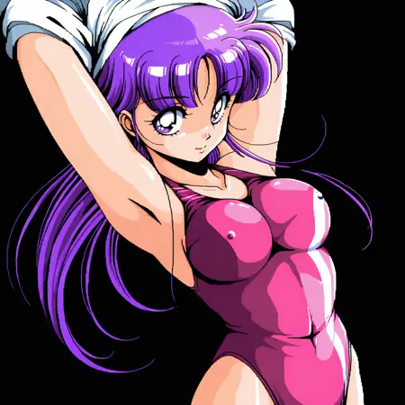 服を脱いでいる、水着、ワンピース水着、脇の下、胸、乳首が覆われている、レオタード、腕を上げる、太もも,