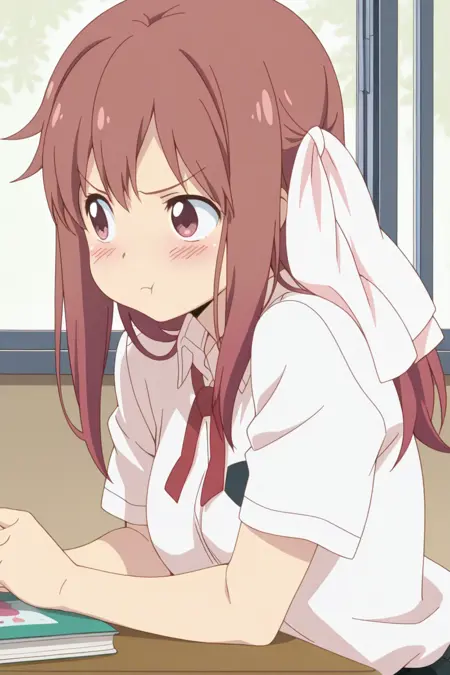 haruka, 1girl, solo, hair ribbon, necktie, school uniform, blazer/shirt, long sleeves/short sleeves