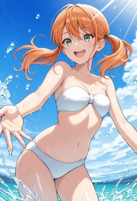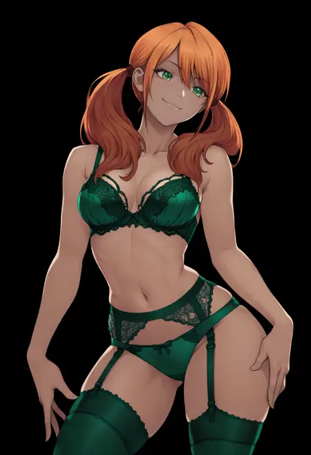 Tsuk1sh1maRiho, green eyes, orange hair, long hair, twintails