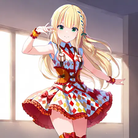 ichinoserei2, long hair, idolypride dress, idoly wrist cuffs, re2idoly hair ribbon, idoly kneeboots,