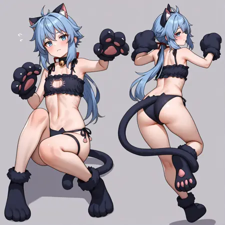 riel,blue hair,blue eyes,low ponytail,
