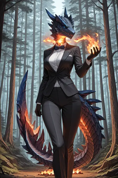 效果变体:尾部飞溅火花,鳞片上熔岩状裂纹,尾部发光渐变从红色至白热