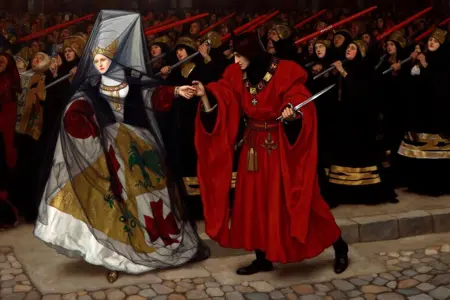 莎士比亚戏剧插图。 充满历史细节与浪漫张力的生动画作。