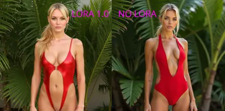 The swimsuit usually won’t cover the crotch, but I can’t guarantee that the LORA will always generate a nice looking vulva. Remember that this is Flux! Either combine it with another flux LORA that will improve the Flux NSFW capability or just inpaint that small area with SDXL.