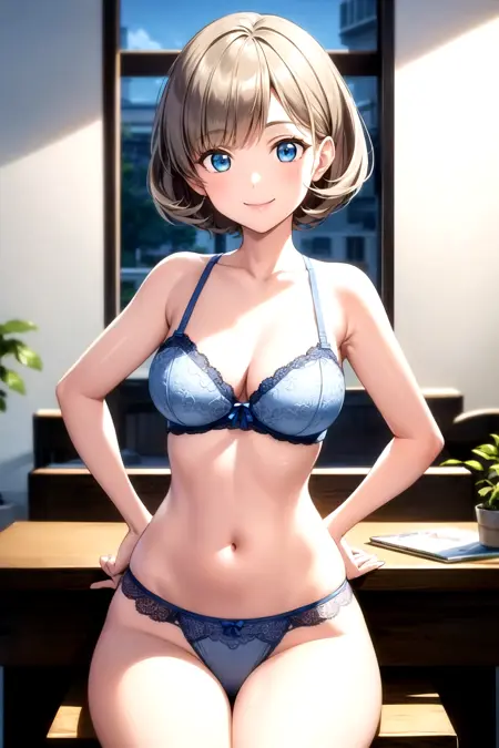 지원 태그: 파란 눈, 연한 갈색 머리카락 또는 (회색 머리카락), 단발