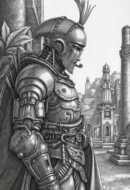 - 他のLoRAやスタイルプロンプトと組み合わせて、独自のハイブリッドを生み出しましょう。例:「サイバーパンクとルネサンス彫版の融合」 や 「バロック風のメカアーマー」 など。