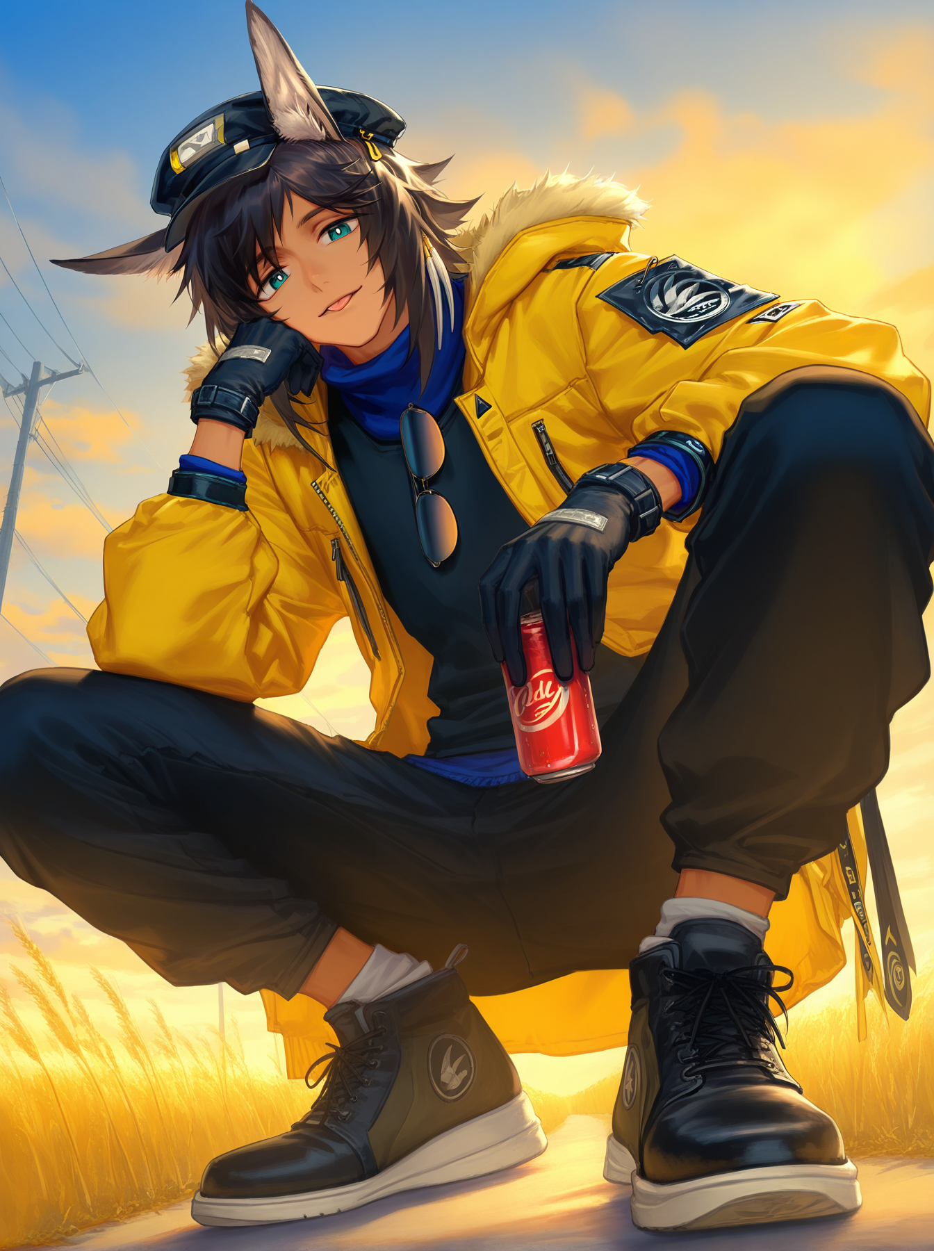 1소년, 캐리어 (arknights), 캐리어 (new_routes) (arknights), courierNR, 성숙한 남성, 사슴 귀, 동물 귀 털, 중간 길이 머리, 검은 머리, 아쿠아 눈, 밝은 동공, 이빨 모양 머리 장식, 밝은 피부,